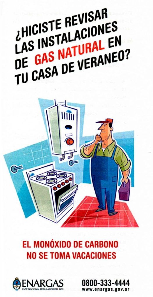 “Sr. Usuario si su reclamo no es atendido debidamente o necesita asesoramiento, Ud. podrá comunicarse gratuitamente con el ente Nacional Regulador del Gas (ENARGAS) al TE 0800-333 4444, por correo sin cargo al Apartado Especial 600 (C1000ZAA) Correo Central o por correo electrónico a reclamos@enargas.gov.ar”